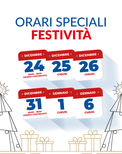 | Sabato: | 09:00 – 19:30 |